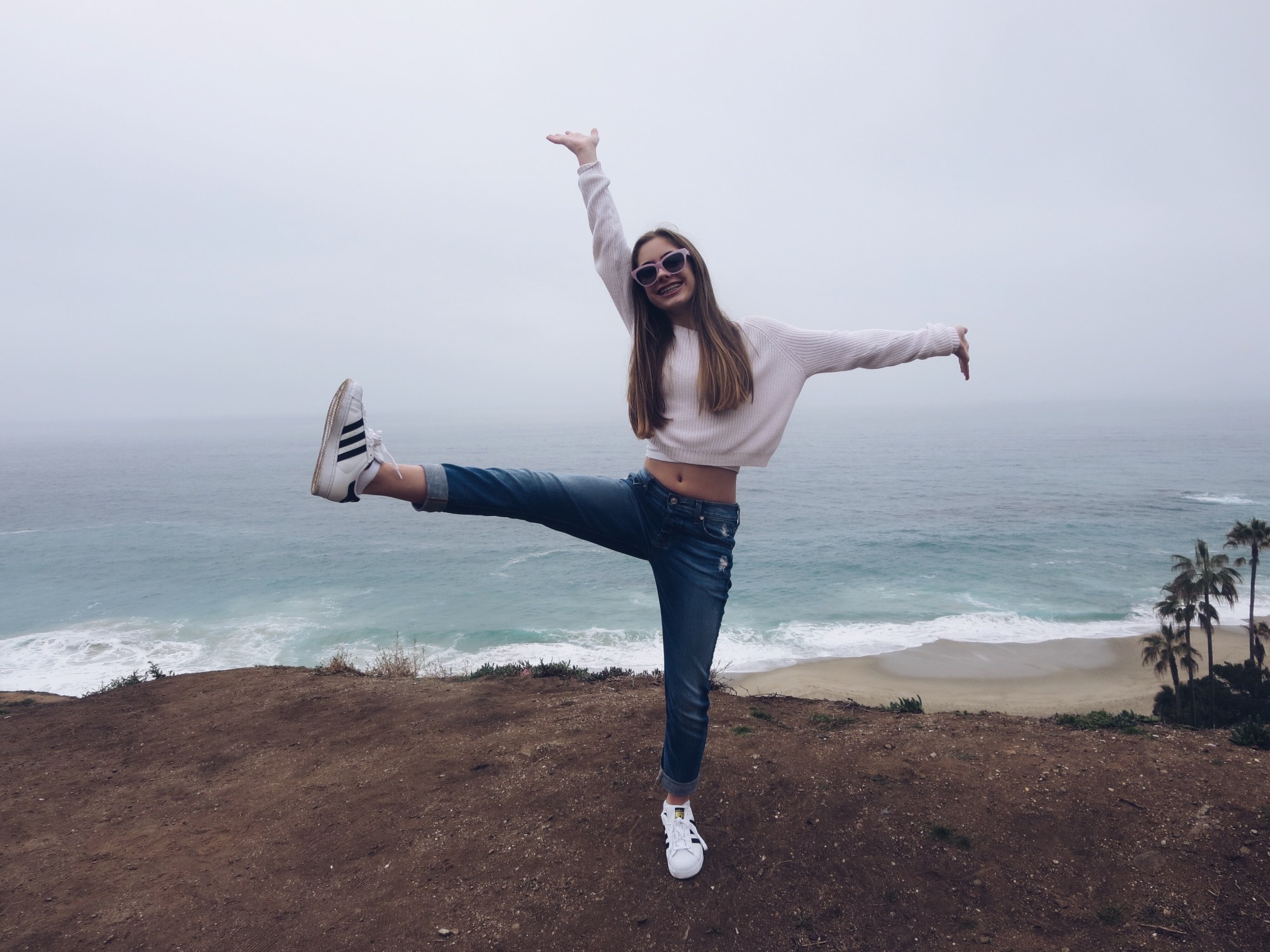 Raiya and Alli, being the amazing friends that they are, decided to take me on a journey the day I got released from the hospital. So Raiya, Alli, and I headed down to Urth cafe, a local favorite. I ordered the Mac and Cheese, Alli got the chicken pesto sandwich and Raiya got a fruit salad. We then took a trolley down to this little gelato shop that I can’t remember the name of but you’ll know right when you see the pictures below. We then took the trolley to this super sketch hill next to a really big mansion where we got some really amazing picture. Again we got on the trolley (when it finally showed up) and rode it for about an hour. We made a stop at the Laguna Art Museum and walked threw the art galleries scattered around this area. The art inside those small business is amazing. It’s so unique and you won’t find anything like it in a museum. Alli is wearing a white blouse from Topshop, a red reflective Adidas jacket, shorts from a thrift shop, sunglasses from QUAY Australia, and her Adidas shoes. She looks AMAZING. I am wearing a sweater from, wait for it, Target, cuffed boyfriend jeans from 7 for all mankind (with Nike Pros underneath), Kate Spade sunglasses, Marc Jacobs purse, and Adidas shoes. The featured image is me being excited and you can see my full outfit! Most pictures below are processed with VSCO filter A5.
