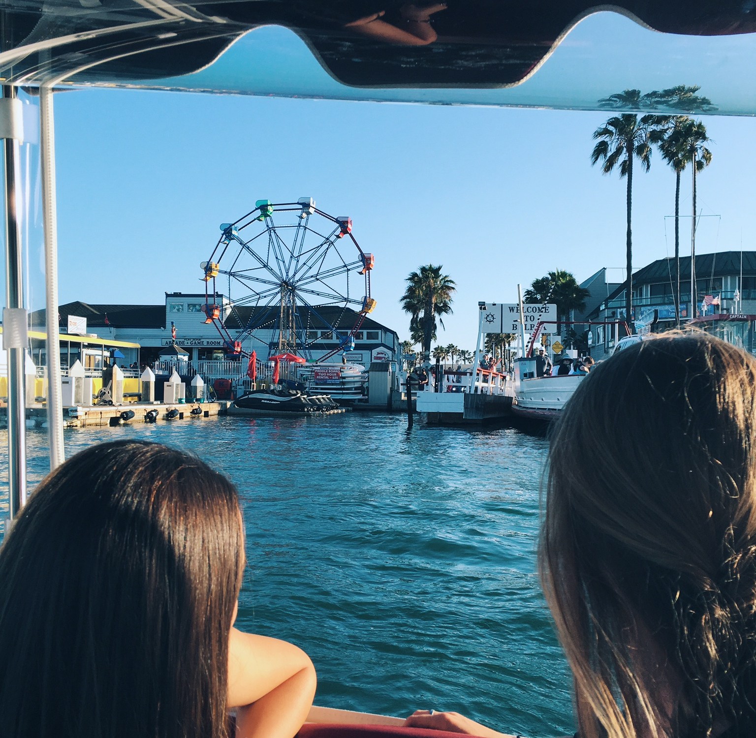 After dinner, exploring the cute restaurant, and getting lost looking for the bathrooms (we ended up in the kitchen somehow), we took pictures on the dock. We then got back on the boat and sailed over to Balboa Pier. Balboa pier is a photographers dream. All the bright colors and amusement park attractions made me so happy and filled my storage with bright pictures. All of us went on the Ferris Wheel and it was terrifying. I’m so scared of heights and have never been on a Ferris Wheel before, so I was super nervous. I held on to Mallory’s hand the whole time and I wouldn’t have wanted to be scared to death with anyone else (love u mal).